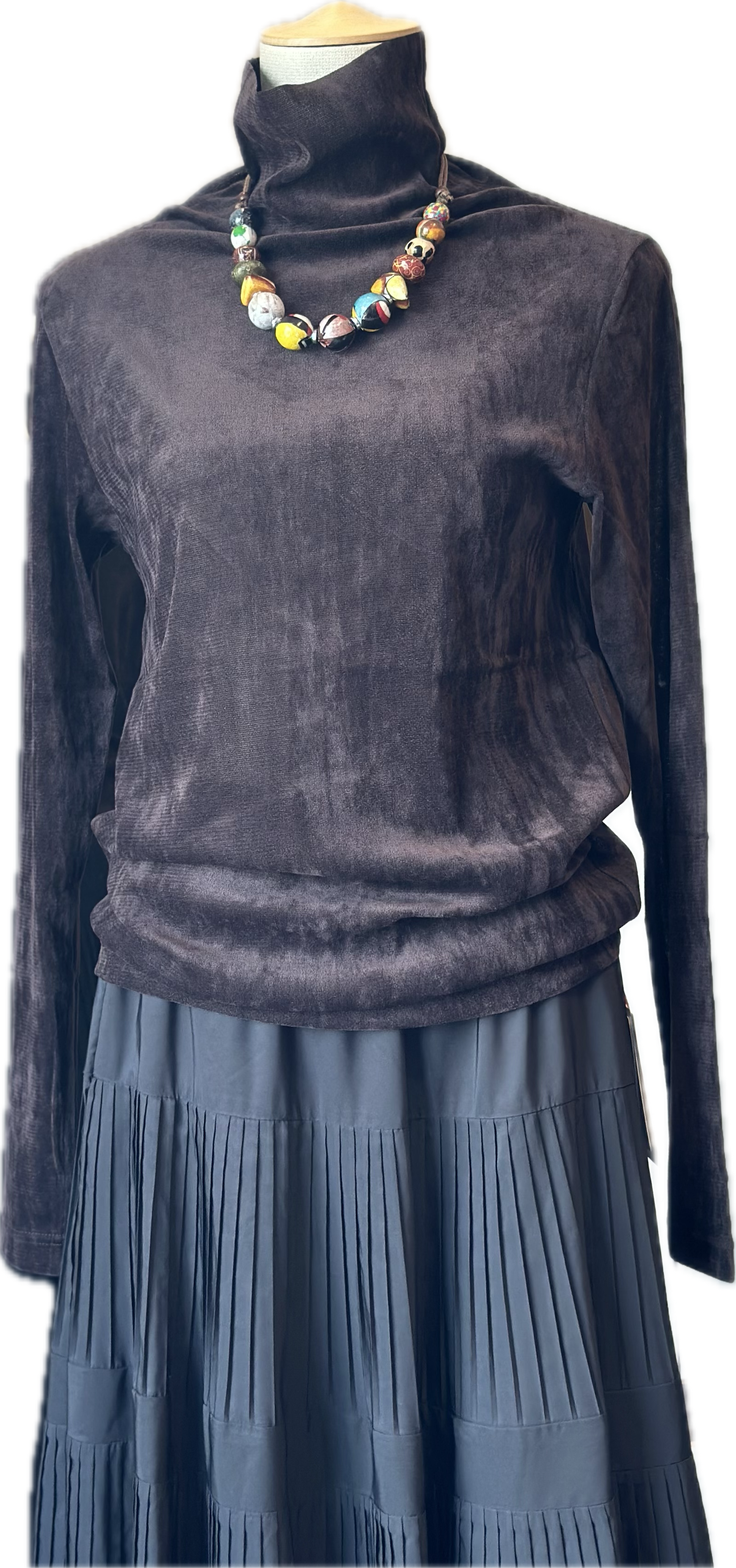 ボトルネックのインナーはどんなアウターにもコーディネートが楽ちんです